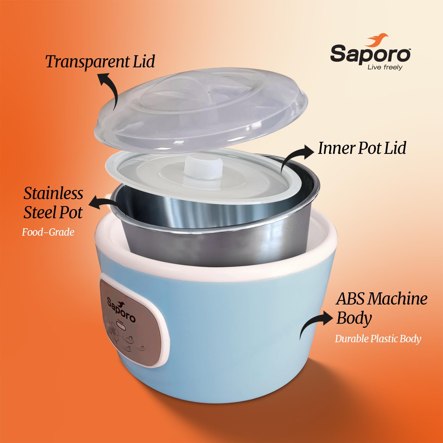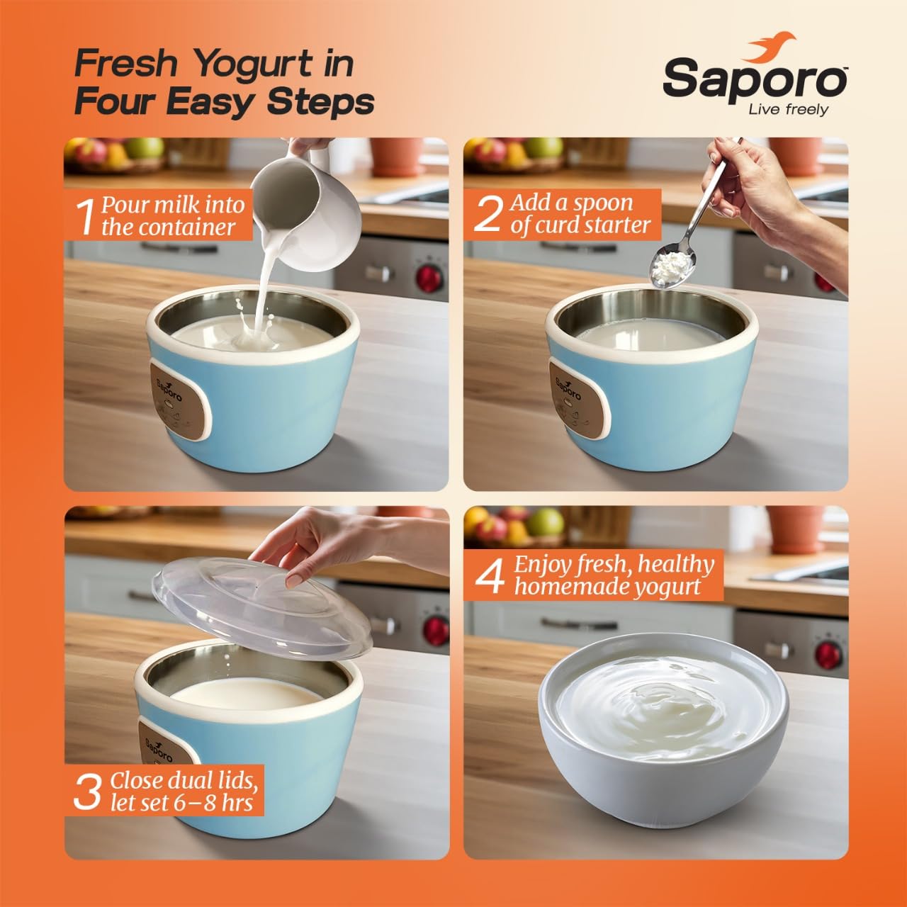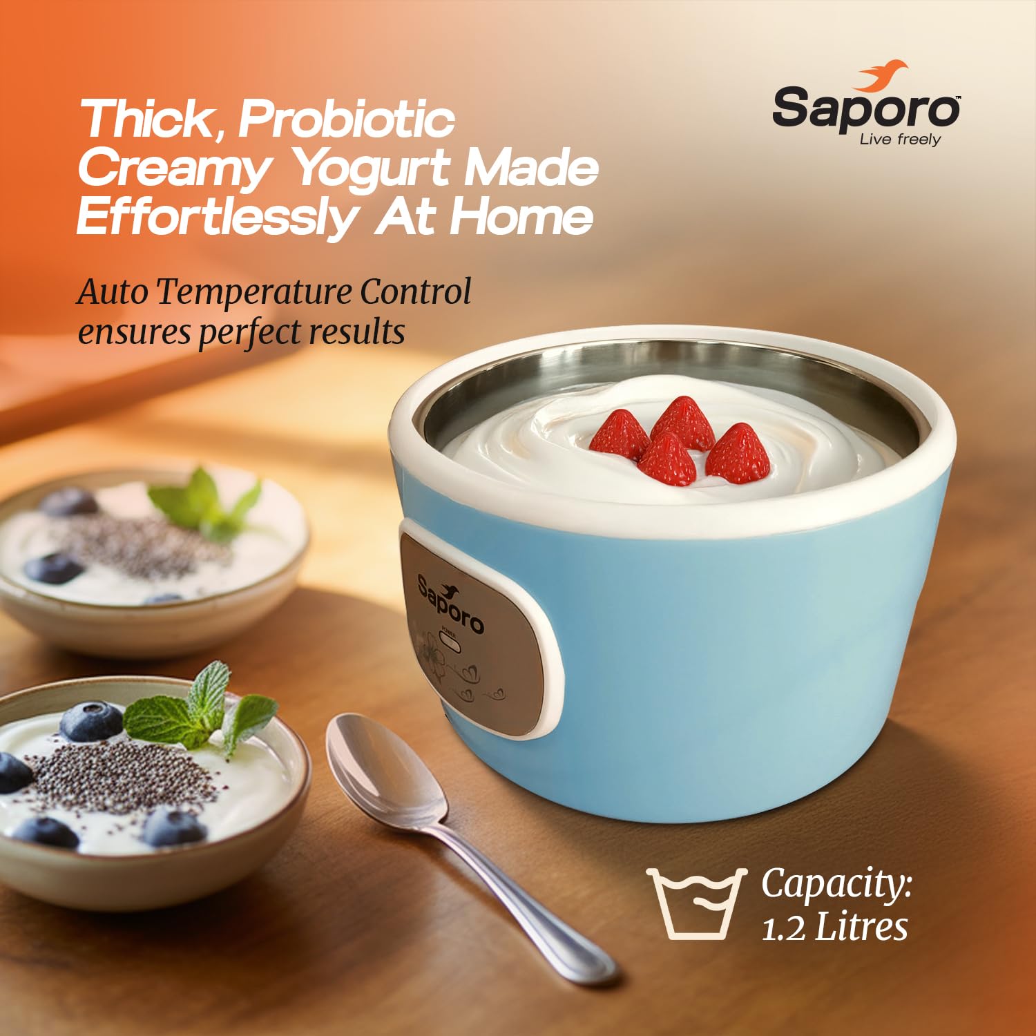 Saporo FitCurd Probiotic Curd Maker Machine 1.2L, Automatic Yogurt & Curd Maker for Kitchen, Auto Temperature Control, 304 Stainless Steel Inner Pot, Storage Lid, Dual Deck Seal