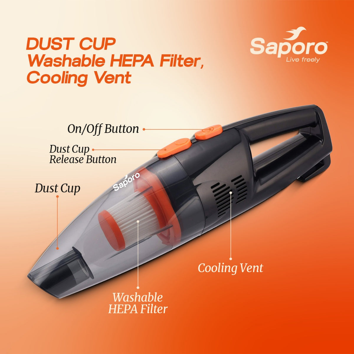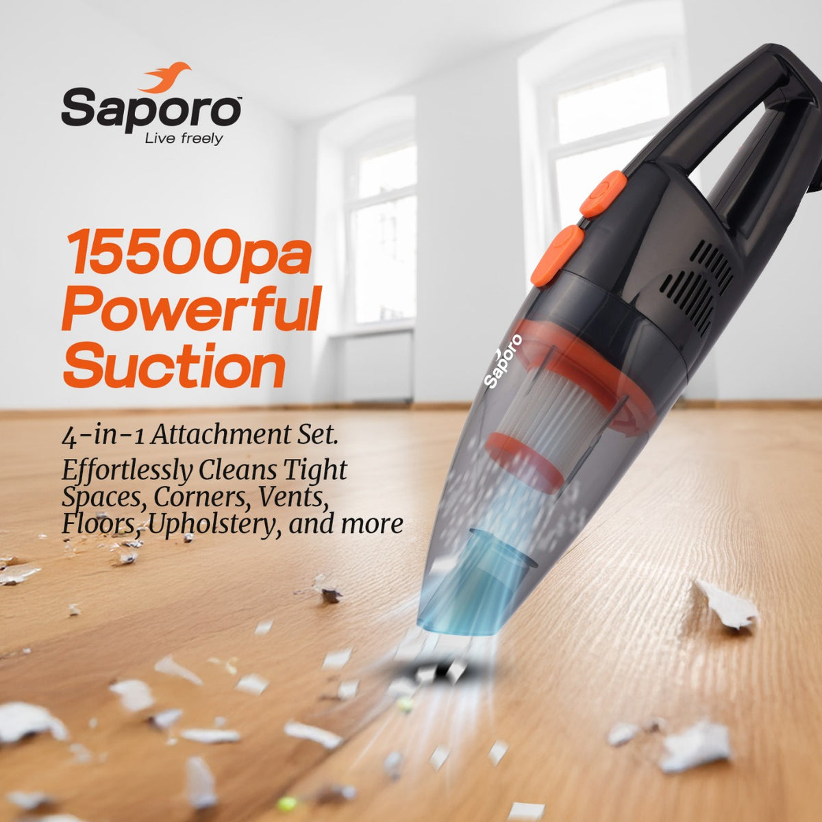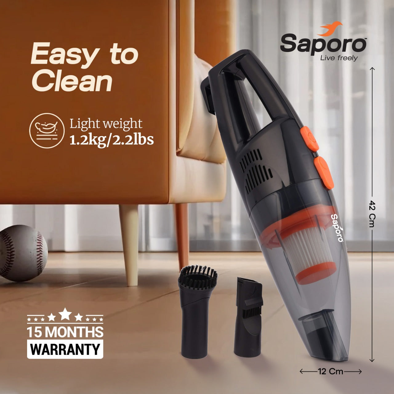 Ans: The Saporo PureVac is a handheld dry vacuum cleaner designed for home use, offering powerful suction in a compact and lightweight design.