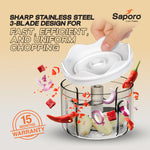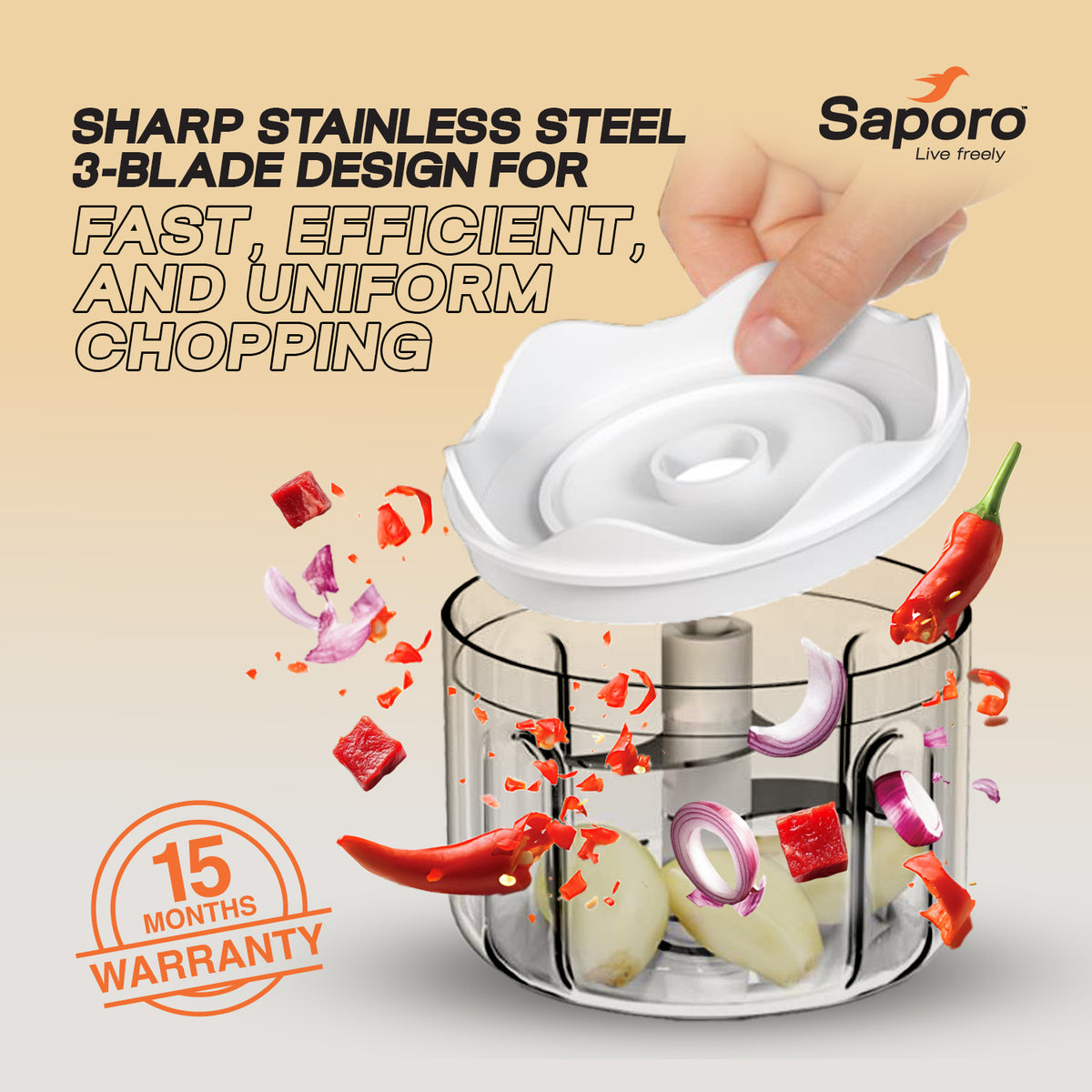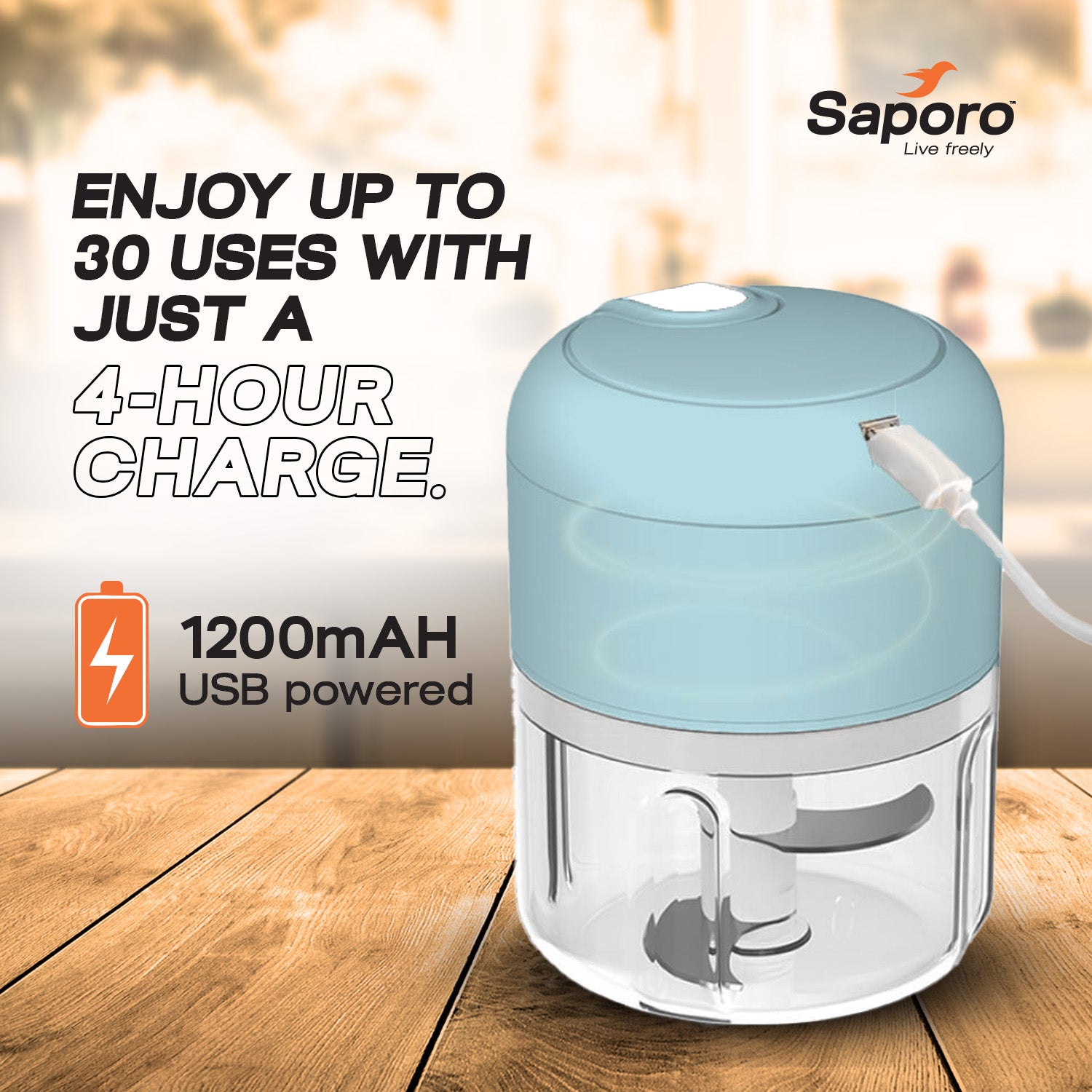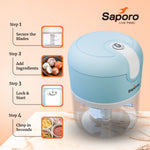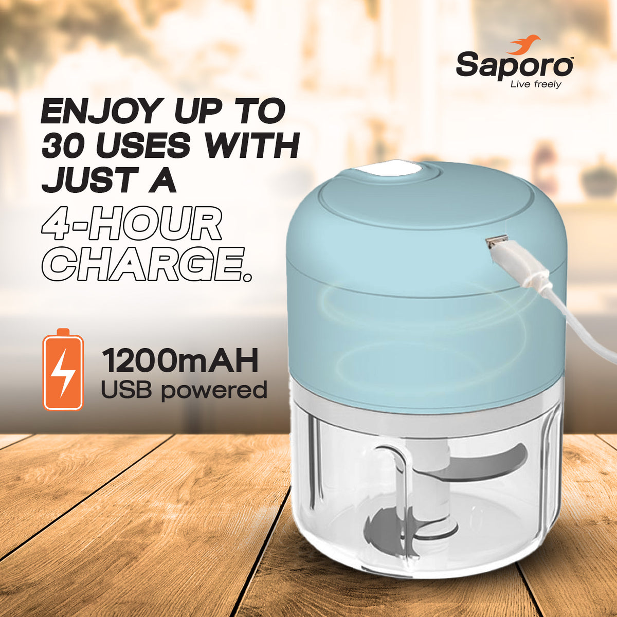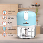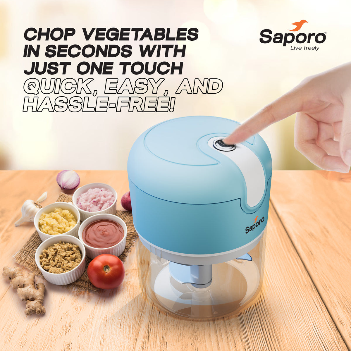 The Saporo Strike Mini Rechargeable Vegetable Chopper is designed to make kitchen prep faster, easier, and more convenient. Featuring one-touch operation and three sharp stainless steel blades, it effortlessly chops onions, minces garlic, crushes nuts, and prepares meats with precision. Its compact 250ml capacity is perfect for everyday cooking needs, while the rechargeable design ensures cordless, hassle-free use. Lightweight and easy to clean, the Saporo Strike Chopper in a stylish blue finish is a must-have tool for quick, efficient meal preparation at home or on the go.